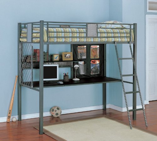 Free Shipping Twin Size Loft Bunk Bed in Charcoal Finish - Monster Bedroom Collection @ Amazon.com