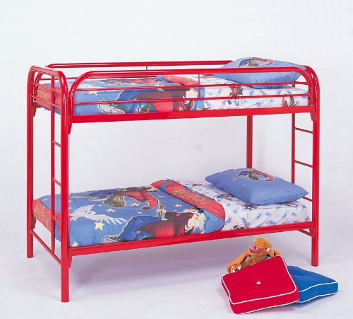 Free Shipping Twin Size Metal Bunk Bed Casual Style in Red Finish @ Amazon.com