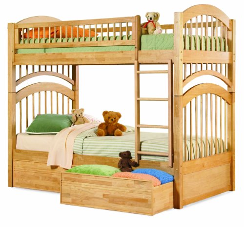 Free Shipping Windsor Twin over Twin Bunk Bed Natural Maple with Flat Panel Bed Drawers @ Amazon.com