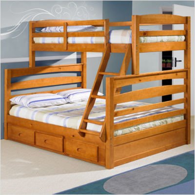 2119 Features: -Twin over full bunk bed. -Honey collection. -Rich honey lacquer finish. -Solid pine construction. -Complete slat kit makes bed mattress ready - no foundation required. -Bed accommodates 8'' Mattress. -Optional trundle available. -Optional three drawer underbed unit features three 16'' deep drawers. -Optional three drawer underbed unit, nightstand, dresser, chest features european roller glide drawers. -Optional nightstand features one drawer. -Optional dresser features six drawers. -Optional chest features five drawers. -Optional desk features pull out keyboard drawer. -Optional hutch features two drawers. -Assembly required. -General conformity certificate. -Meets all ASTM and CPSC specifications. -Discovery World Furniture provides one year limited warranty. Read more...