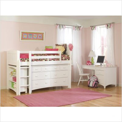 Cottage Low Loft Bed in White with Essex Accessories Configuration: Low Loft Bed with 5 Drawer Dresser and 2 Bookcases Review